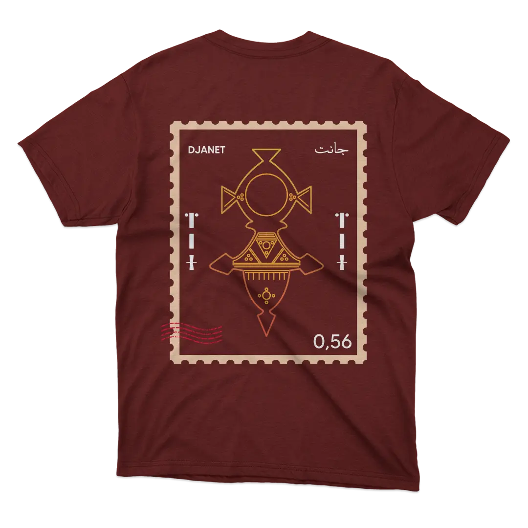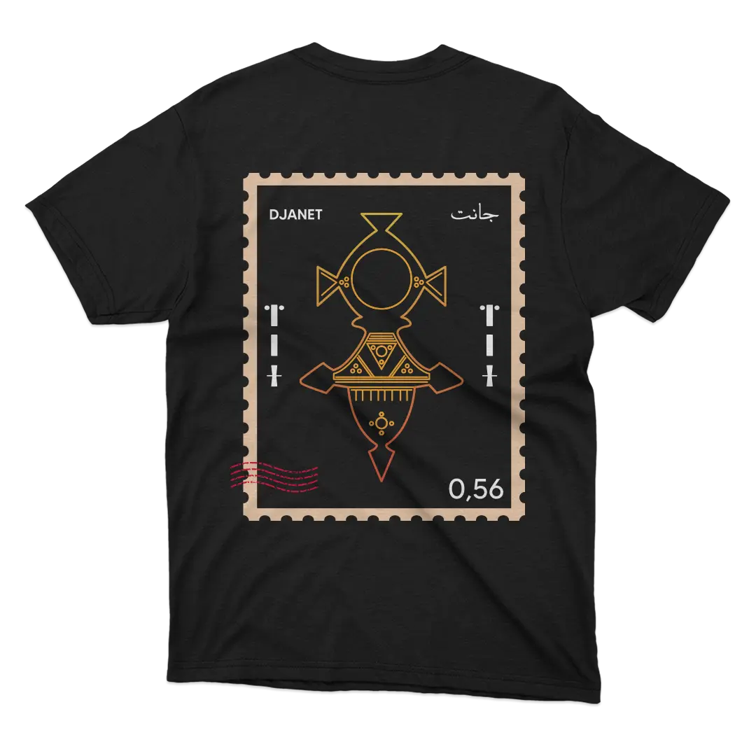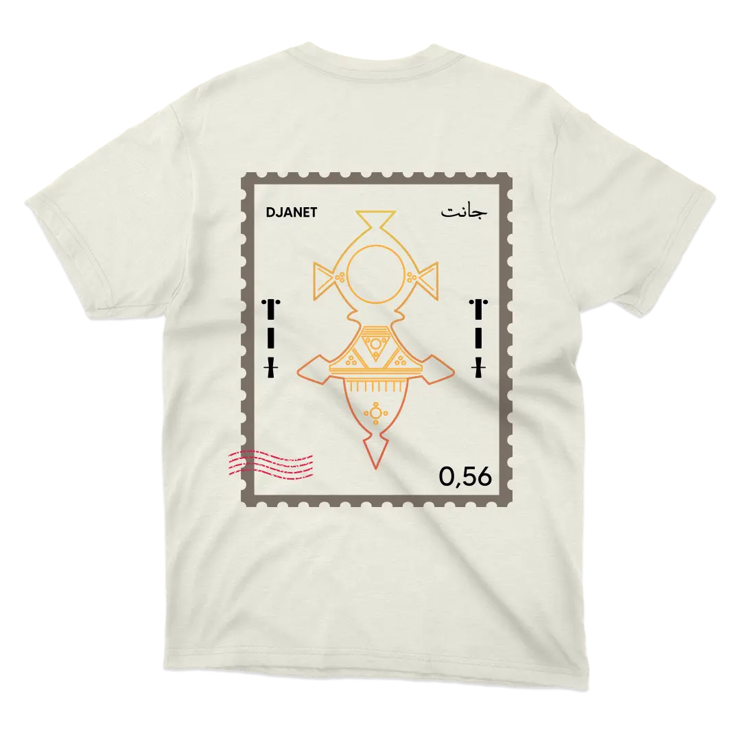 Le T-Shirt Djanet Bijou célèbre l’héritage des bijoux traditionnels du Sud algérien, à travers un design inspiré d’un timbre ancien. Rendant hommage aux artisans du désert, ce visuel met en lumière un bijou emblématique de Djanet, où chaque détail évoque la richesse culturelle des peuples nomades.